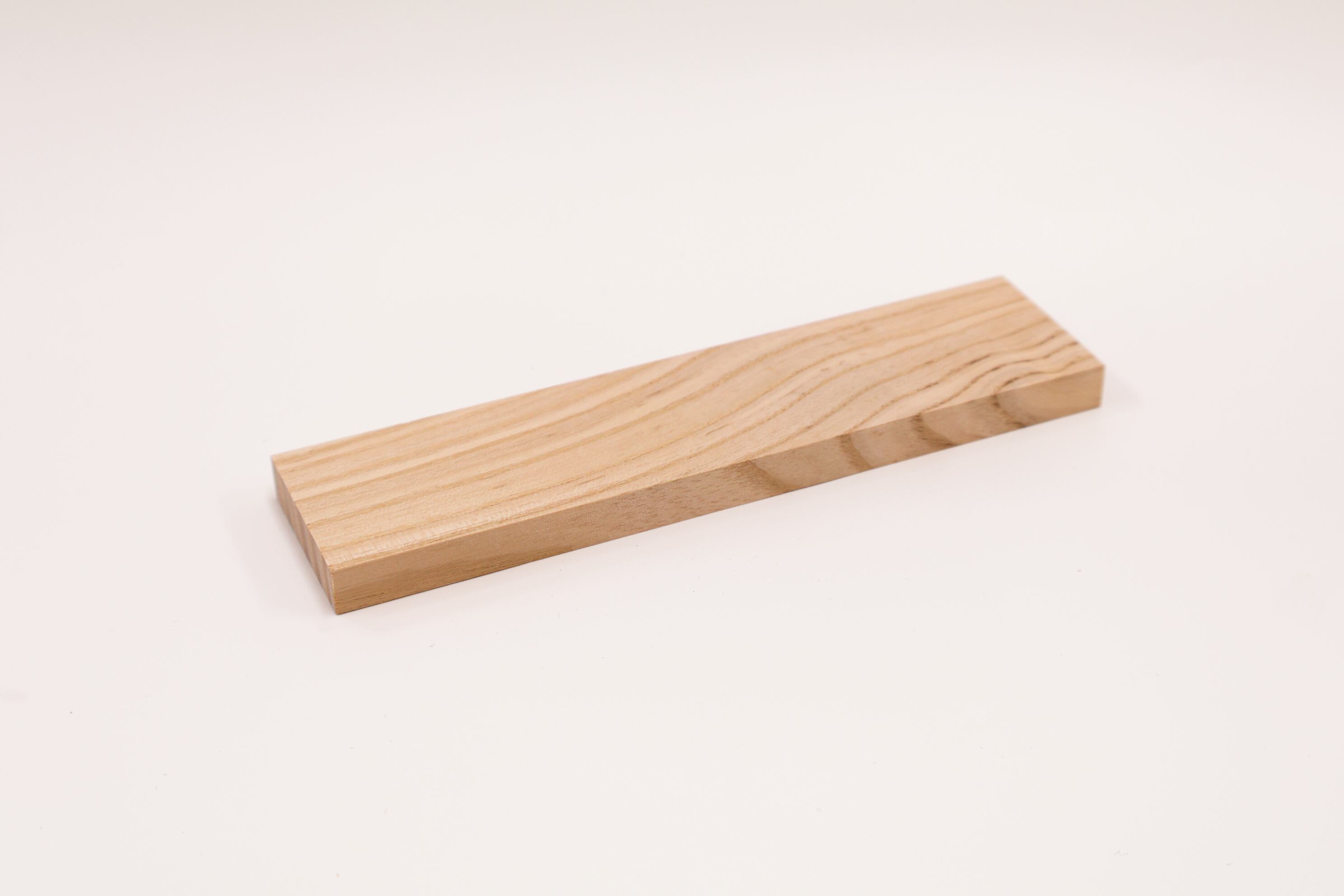 【タモ】 落葉広葉樹。高さ30m。やや湿ったところを好みます。広葉樹は一般的に樹形が「うねうね」しますが、ヤチダモは「まっすぐ」「断面はまんまる」なので、広葉樹林内を歩いていると、一見「まっすぐ」な幹が目に入り、針葉樹かな、と思います。冬の葉っぱが無い時期は、冬芽と葉痕を探すと楽しめます(王冠をかぶって、にっこり顔)。木目は、はっきりしていて、表情が豊かです。黄色っぽいので建物の中で目立ち、木が使われているとわかりやすい材です。粘り強く、曲げても折れにくいため、用途は幅広く家具やクラフト、手すりやフローリングにも。テーブルやカウンターには集成材(細い材を接着剤でくっつけて大きい板にしたもの)に加工して使われているのをよく目にします。
