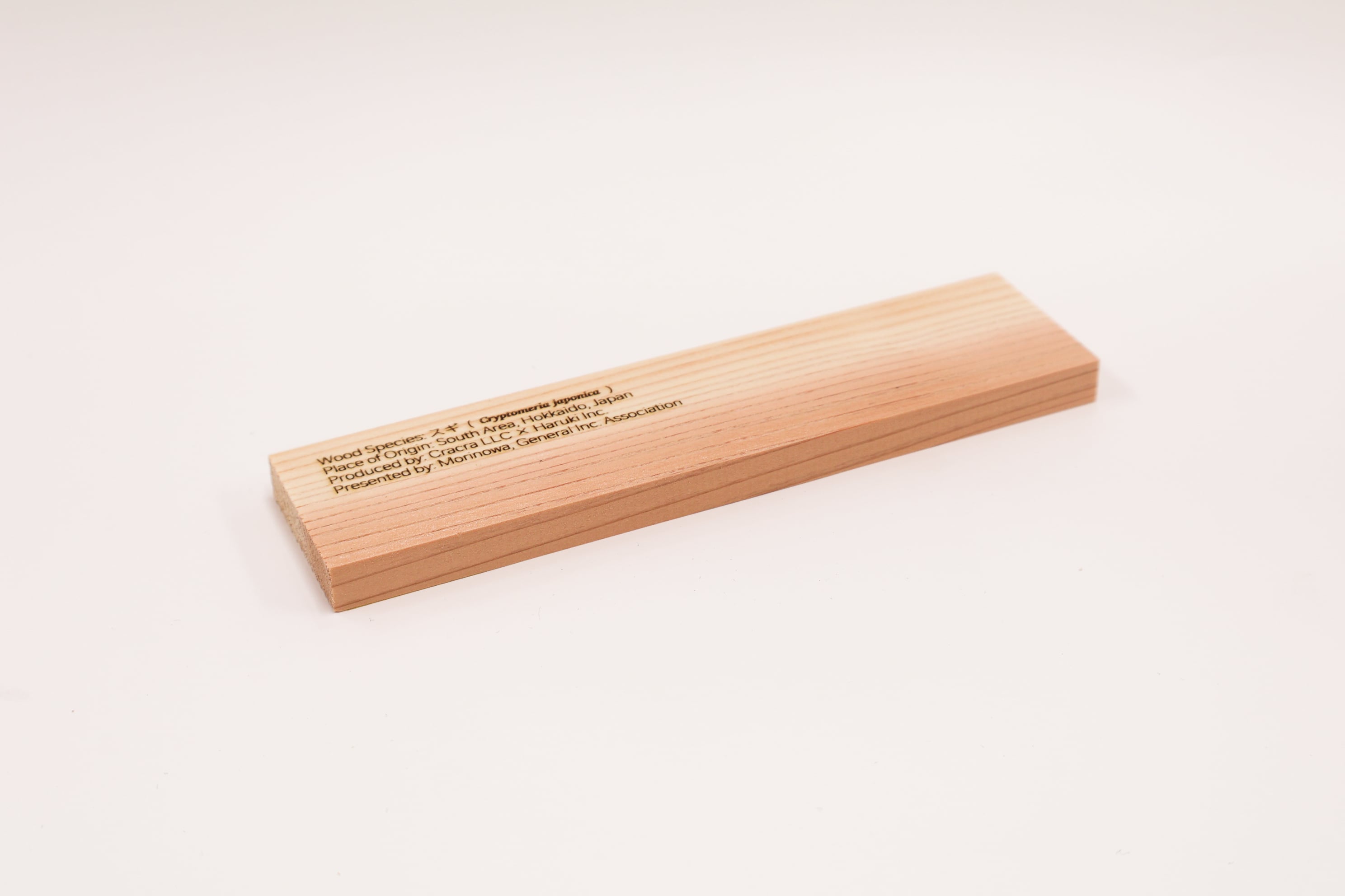 【スギ】常緑針葉樹。圧巻の高さ40m超え。スギの自生地は青森県が北限ですが、北海道の道南エリアには古くからスギが植えられています。道南スギは、まっすぐ高く伸びる長寿の木で、古くから神聖な木とされています。さらに、スギは建築材料としても優れており、神社の建物や鳥居、社殿などに使われています。このため、神社の周辺にスギが植えられることが多いです。道南スギは、中心部がピンク色で美しいのが特徴です。また、香りも良く、触れたときに温かみを感じるのは熱伝導率が低いからです。一方で、傷付きやすいという特性がありますが、そのために子どもやお年寄りに適した材でもあります。ぜひ手に取って、その魅力を感じてみてください。